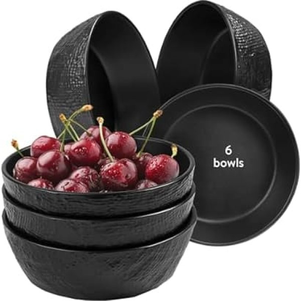 Linen Artisan Cereal Bowls 15 cm 6-Piece Charcoal Black