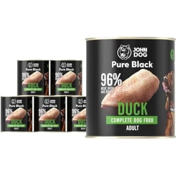 JOHN DOG Pure Black - 96% Meat - Premium Wet Food for Dogs - Hypoallergenic Dog Food - Gluten Free Wet Food - 100% Natural Ingredients - Dog Treats - 6 x 800 g - (Duck)