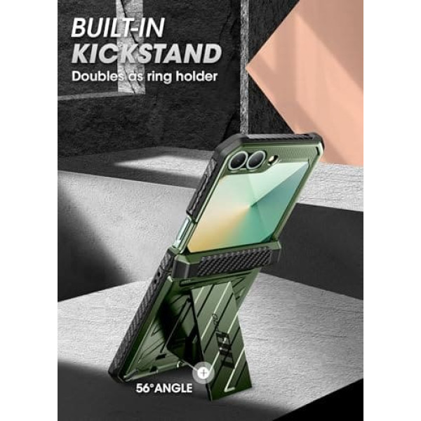 Compatible with Samsung Galaxy Z Flip 6 2024 / Z Flip 5 2023. Precise cutouts ensure a perfect fit High-quality shockproof PC + TPU back with non-slip bumper exceeds the protection standard (26 times drop test from 48 inch height). Aesthetic design ensures 360° all-round charm Functional fold-out stand allows a 56° viewing angle and doubles as a ring holder. Built-in front screen protector prevents scratches without compromising sensitivity Unique hinge protection technology provides excellent shock absorption and protects your hinge from accidental drops and bumps in daily use Lightweight design with removable, rotating holster makes it convenient and portable, convenient for your favourite shows, movies and games in the office or outdoor activities › See more product details