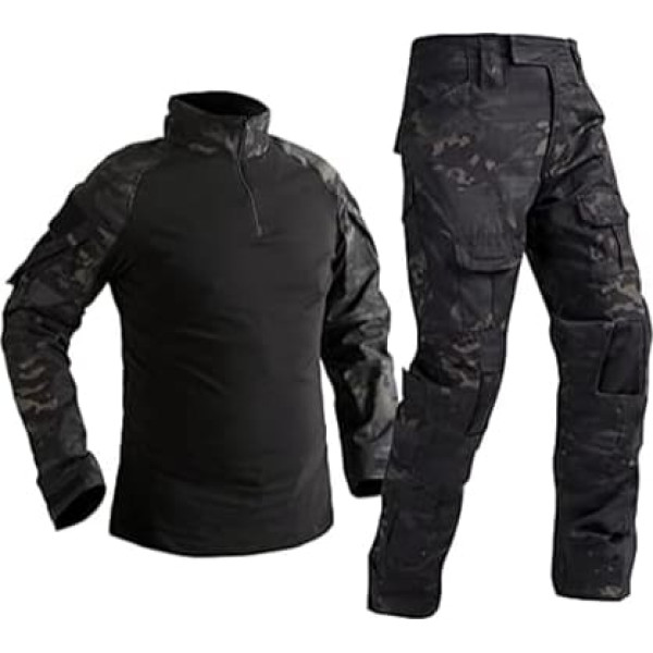 Uugood Combat Shirt Pant Tactical Suits Army Military T-Shirt Paintball Equipment Tactical Clothing German Army Long Sleeve Multicam Uniform for Airsoft Paintball Hunting