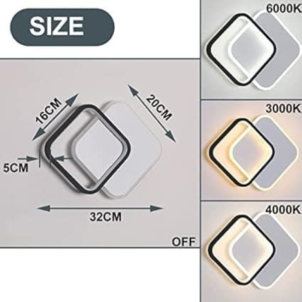 ZTWLEED LED Indoor Wall Light, 29 W, 3200 lm, Modern Wall Lamp, 3 Colours, Light 3000 K/4000 K/6000 K, Square Wall Lighting for Bedroom, Living Room, Corridor, Stairs, 32 cm, 220 V