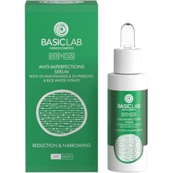 Suitable for acne and blemishes, with extended pores, with acne scars, with sun-induced and hormonal impurities, normal skin and combination skin, oily skin RESULTS - Reduces excess sebum. Narrowed pores. Smoothed epidermis. Visibly improved skin texture and elasticity, restored elasticity. Activity – Niacinamide reduces the appearance of pores and works against wrinkles. Biolin P strengthens and regenerates the skin. The active ingredient complex regulates sebum production. Use: apply a few drops to the face and neck while avoiding the eye area. Apply morning and/or evening to thoroughly cleansed and dry skin. Wait about 2-3 minutes before applying another product. BASICLAB Dermocosmetics - a brand created from experience in the pharmaceutical and cosmetic industry. The company's mission is to restore confidence in the effectiveness of cosmetics. › See more product details; Product description Product Description Active serum with a water gel texture based on niacinamide, rice water filtrate and prebiotic. Suitable for skin with impurities struggling with overproduction of sebum, shine and acne. Suitable for day and night use. Safety Warning Non; Product description Product Description Active serum with a water gel texture based on niacinamide, rice water filtrate and prebiotic. Suitable for skin with impurities struggling with overproduction of sebum, shine and acne. Suitable for day and night use. Safety Warning Non; Product Description Active serum with a water gel texture based on niacinamide, rice water filtrate and prebiotic. Suitable for skin with impurities struggling with overproduction of sebum, shine and acne. Suitable for day and night use. Safety Warning Non