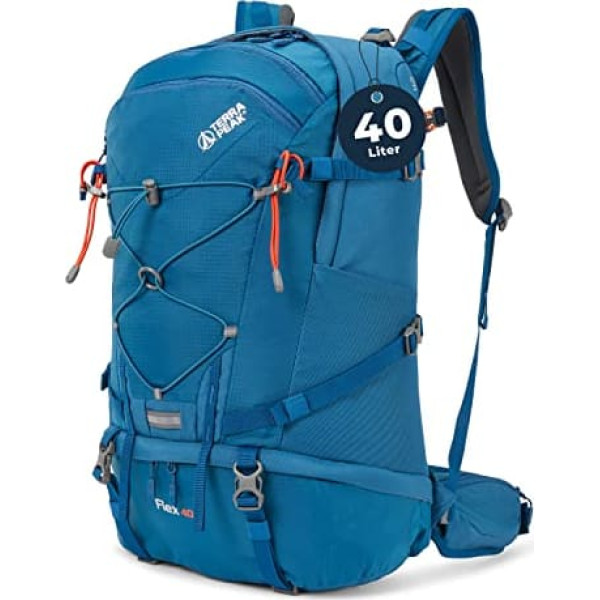 Terra Peak Flex 40 Premium Hiking Backpack 40 L Large with Back Ventilation, Hydration System & Rain Cover - Trekking Backpack Made of Breathable 3D Air Mesh Polyester - Outdoor Daypack with Waist Belt