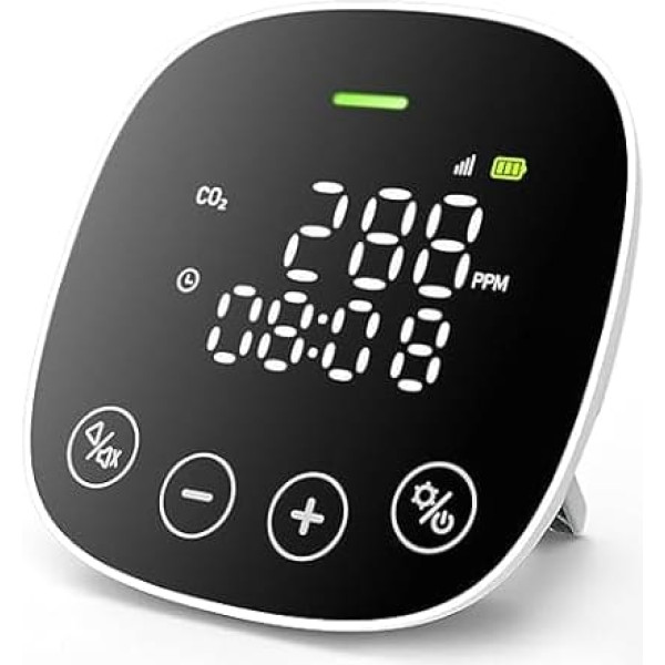 For monitoring the CO2 concentration in rooms High-quality NDIR dual beam sensor Room temperature and humidity Alarm function for CO2 concentration Compact and practical/comfort display/with stand › See more product details