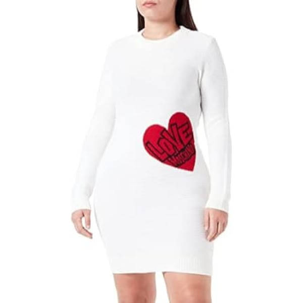 Product description Long-sleeved tube dress in ottoman stitch blended wool-cashmere, 7 gauge, with red Love Moschino heart jacquard intarsia on the front.; Product description Long-sleeved tube dress in ottoman stitch blended wool-cashmere, 7 gauge, with red Love Moschino heart jacquard intarsia on the front.; Long-sleeved tube dress in ottoman stitch blended wool-cashmere, 7 gauge, with red Love Moschino heart jacquard intarsia on the front.