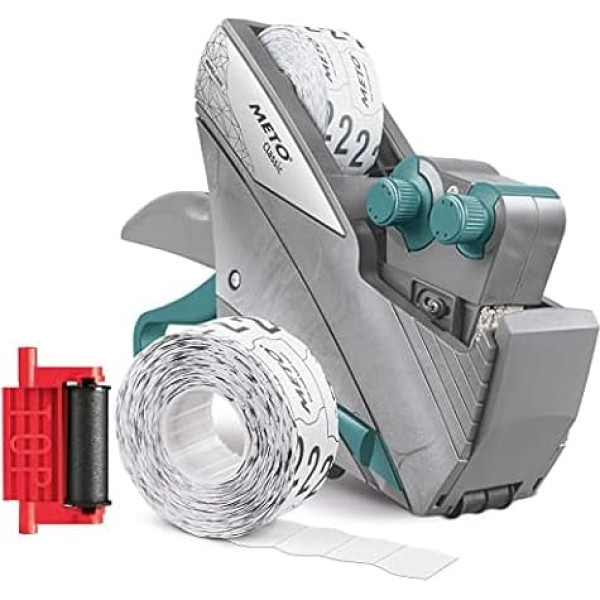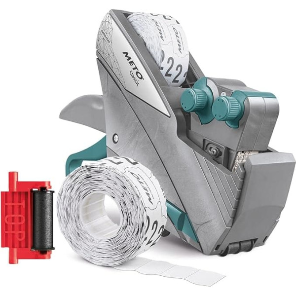 The price is hot: With the professional METO Classic XL Giant price labeller, price labelling up to €999.99 is possible – with oversized numbers. On the safe side: we provide a 2 year warranty on our price guns. Easy to use: our proven pressure point mechanism and high repeating speed allow precise and constant print quality. No more wrist pain: ergonomic design makes it easy to hold. ATTRACTS EYE CATCHING The single-line print is perfect for 29x28mm labels. No wish remains open: With a total of 7 alphanumeric characters in the line (with a character height of 8.3 mm and a character width of 3.55 mm) and four different currency symbols (£, €, Kr., Fr.) all common award standards are possible. Unpack and get started right away: The price tag includes ready-to-use labels (white, permanent adhesive) and an ink roll. The original from Meto. Since 1959. › See more product details; Product description Promotional product labelling: the 1-line METO Classic XL Giant price gun is versatile: whether catering, independent shop owners, trade, industry, pharmacy/medicine, logistics or textile – with our price gun you can mark wherever pinpoint information is necessary. The design of the METO Classic XL Giant is inspired by the needs of its users. An ergonomic handle guarantees fatigue-free work. In addition, the innovative weight distribution of the printing mechanism protects the wrist. High-quality materials and regular quality controls make the price gun a robust and durable device. Trust the original. Trust your METO. Precise and constant print quality is essential in the labelling. Our tried and tested pressure point mechanism ensures consistent perfection in combination with a low lever travel. Good-bye illegible labels - the sophisticated individual tapes of the METO Classic XL Giant always ensure the optimal printing result. Made in Germany. Even annoying frothing is a thing of the past: our easy-handle system allows easy and clean paint roll and label roll change. This means that everyone can adjust the price gun ready to label in no time. The METO brand stands worldwide for leading labelling and promotion solutions for the retail and its supply chain. Many of METO's marketing and promotion solutions are now standard in the retail market.; Product description Promotional product labelling: the 1-line METO Classic XL Giant price gun is versatile: whether catering, independent shop owners, trade, industry, pharmacy/medicine, logistics or textile – with our price gun you can mark wherever pinpoint information is necessary. The design of the METO Classic XL Giant is inspired by the needs of its users. An ergonomic handle guarantees fatigue-free work. In addition, the innovative weight distribution of the printing mechanism protects the wrist. High-quality materials and regular quality controls make the price gun a robust and durable device. Trust the original. Trust your METO. Precise and constant print quality is essential in the labelling. Our tried and tested pressure point mechanism ensures consistent perfection in combination with a low lever travel. Good-bye illegible labels - the sophisticated individual tapes of the METO Classic XL Giant always ensure the optimal printing result. Made in Germany. Even annoying frothing is a thing of the past: our easy-handle system allows easy and clean paint roll and label roll change. This means that everyone can adjust the price gun ready to label in no time. The METO brand stands worldwide for leading labelling and promotion solutions for the retail and its supply chain. Many of METO's marketing and promotion solutions are now standard in the retail market.; Promotional product labelling: the 1-line METO Classic XL Giant price gun is versatile: whether catering, independent shop owners, trade, industry, pharmacy/medicine, logistics or textile – with our price gun you can mark wherever pinpoint information is necessary. The design of the METO Classic XL Giant is inspired by the needs of its users. An ergonomic handle guarantees fatigue-free work. In addition, the innovative weight distribution of the printing mechanism protects the wrist. High-quality materials and regular quality controls make the price gun a robust and durable device. Trust the original. Trust your METO. Precise and constant print quality is essential in the labelling. Our tried and tested pressure point mechanism ensures consistent perfection in combination with a low lever travel. Good-bye illegible labels - the sophisticated individual tapes of the METO Classic XL Giant always ensure the optimal printing result. Made in Germany. Even annoying frothing is a thing of the past: our easy-handle system allows easy and clean paint roll and label roll change. This means that everyone can adjust the price gun ready to label in no time. The METO brand stands worldwide for leading labelling and promotion solutions for the retail and its supply chain. Many of METO's marketing and promotion solutions are now standard in the retail market.