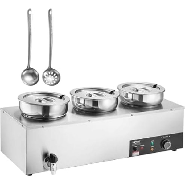 VEVOR Electric Soup Warmer Food Warmer 3 x 7.4 Qt Commercial Food Warmer 1200W Adjustable Temperature 30-85°C with Dry Fire Protection and Reset Button for Restaurant Buffet