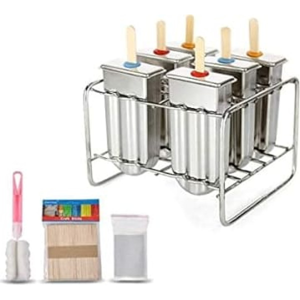 Ice Lolly Mold Stainless Steel Popsicle Mold Ice Cream Mould with Stainless Steel Stick Holder Base Lolly Maker Set Ice Pop Mold DIY Ice Cream Mould Maker Freezer Set of 6