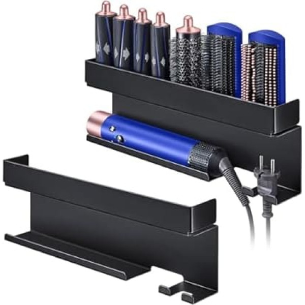 Easy to store: our straightener holder offers space for the 7-in-1 styler hair dryer accessories. The simple design of the holder makes it easy to store and remove hair tools. No more mess and order. Multifunctional storage: the storage compartment of the hair dryer holder black offers enough space for hairdressing tool accessories, razors, skin care products and other daily necessities. Hook for storing hair tool cables. Practical functions: the wall hair dryer holder comes with an EVA protective pad, which prevents the curling iron from being scratched when storing and removing. The orderly placement of hair dryers and accessories saves counter space. Stylish design: the matte black appearance, stylish and simple, can be perfectly integrated into different bathroom styles. The straightener holder is made of metal and is equipped with a rust protection coating, which is robust and does not easily deform. Sticker installation: no drilling required, easy installation, on the back of the straightener holder there is a strong adhesive, self-adhesive sticker. Before installation, make sure the wall is dry and clean. Suitable for smooth and dust-free walls such as tiles, glass and metal. Tips: Do not install the hair dryer holder on fabric, wallpaper, paint or uneven walls to avoid damage to the wall. Press for a few seconds to ensure a firm adhesion. Wait 48 hours after installation before using it. › See more product details