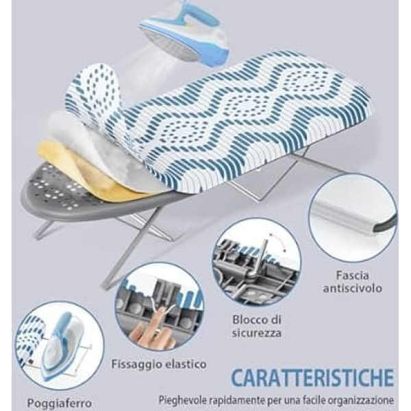 SMOOTH SURFACE & IRONING STATION This tabletop ironing board with a flat and smooth fabric cover without grooves for wrinkle free clothing is ideal for suits, dresses, collared shirts or any other garment. The ironing shelf provides space for the iron to prevent clothes from burning Easy to fold: the unique folding system allows the ironing board to fold completely in half. It can be secured by locking buttons when folded. Extended size: 30.48 x 76.2 x 17.78 cm. After folding, the size is 30.48 x 41.91 x 7.62 cm. Perfect for home, dorm, travel. Fits anywhere space is limited AMAZING SPACE SAVING The space-saving compact ironing board with its own hanging hook can be easily hung on any standard door, also can be stored in a closet, on a wall or even under a couch or bed. The handle design makes it easy to carry wherever you need it DURABLE MATERIAL The non-slip bar and foldable metal legs provide exceptional rigidity when the ironing board is in use. Adjustable TRP foot covers help protect floors from scratches and make it easier to use on uneven tabletops. In addition, thanks to the mesh design, it can breathe quickly and dissipate heat PROFESSIONAL PERFORMANCE Our ironing boards with sturdy mesh top allow for even heat distribution. The 100% cotton cover is heat resistant and prevents clothing from sticking to achieve professional ironing results › See more product details