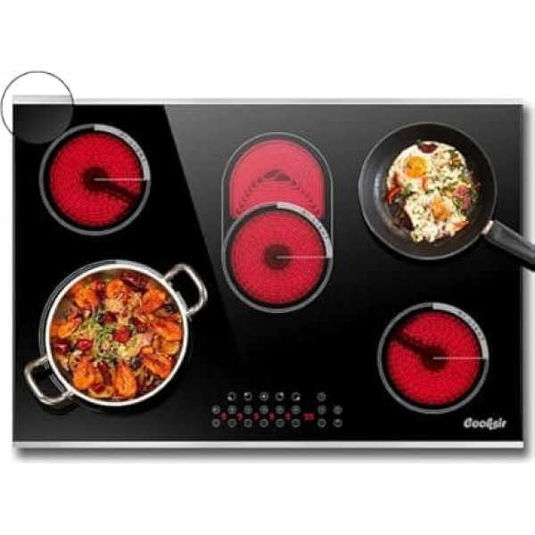 Cooksir Glass Ceramic Hob 5 Plates, 77 cm Built-in Hob with Frame, 8400 Watt, Oval Zone for Grill, Glass Ceramic Hob, Timer Switch, Built-in, 240 V, No Plug