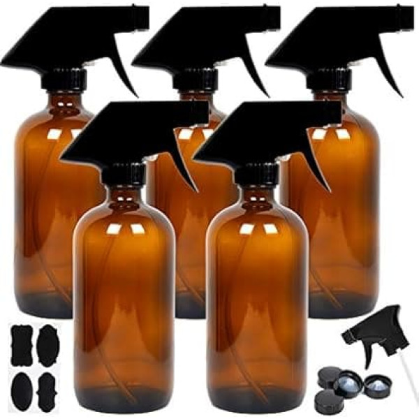 Youngever Pack of 5 Empty Glass Spray Bottles, 250 ml Clear Glass Spray Bottle for Essential Oils (Amber)