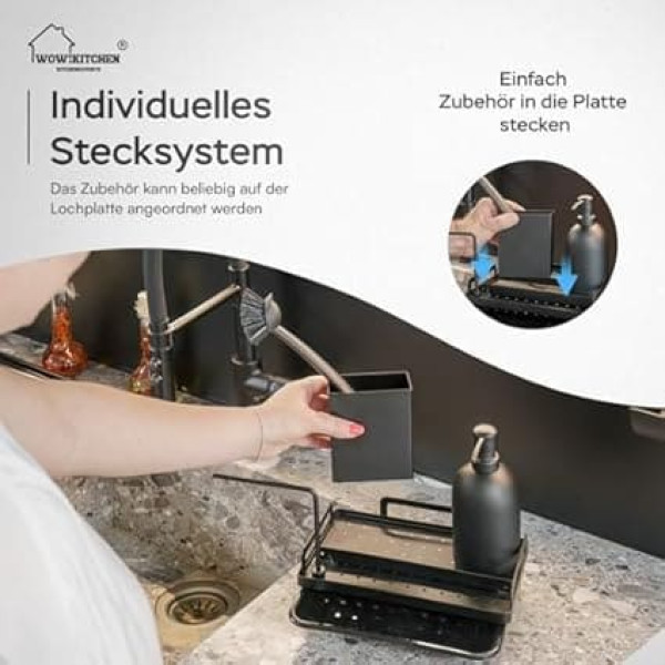 Wow!Kitchen® Sink Organiser, Kitchen Organiser in Black, Stainless Steel, Unique Plug-In System, Developed by German Engineer for Kitchen and Bathroom, Kitchen Organiser, Home Organiser Kitchen