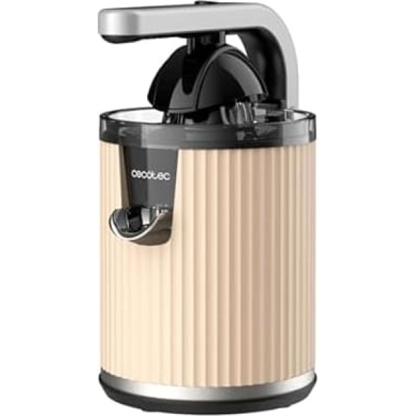Cecotec Xqueeze RetroJuice 600 Beige Electric Citrus Juicer with Arm for Oranges and Citrus Fruits 600W Retro Stainless Steel Filter Plastic Cone Pulp Remover Lever Anti-drip Protection