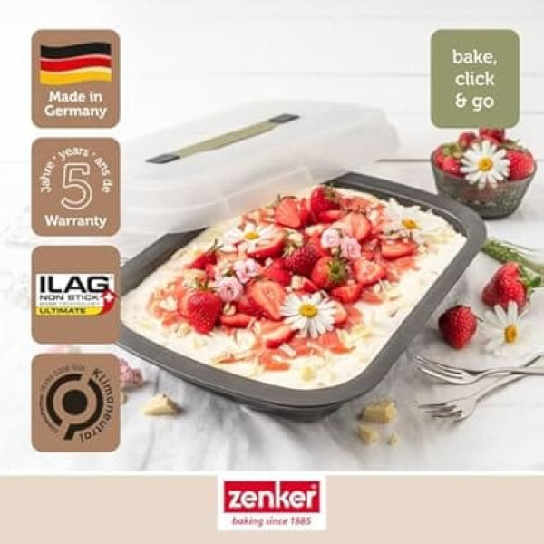 Zenker Bake, Click & Go Dessert and Casserole Dish with Hood - 34 x 24.5 x 8 cm - Baking Mould with Matching Lid for Direct Transport - Cake Tin for Baking & Transport