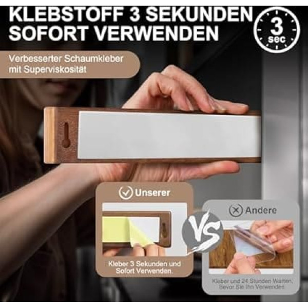 Super strong magnetic strip: the knife magnetic strip with powerful built-in powerful magnetic strips runs through the entire knife holder with super strong magnets. Even your heaviest knives can hang safely and safely. This magnetic knife holder is perfect for any private or professional kitchen. High-quality acacia wood: the magnetic knife holder is made of fine acacia wood, its surface is treated with moisture and corrosion resistant, you don't have to worry about mould or crack problems, minimalist design, almost suitable for any kitchen. Space-saving design: our magnetic knife bar is 40 cm long, so you can hold more knives than most knife holders on the market. No more heavy wooden block that takes up your precious kitchen space, simply hang your knives on today's magnetic knife holder, making perfect use of wall space. 2 types of installation: whether self-adhesive or screw mounting, they are easy to install. You can install it with screws, you can install it on any type of wall surface. Or you do not need to drill when you install the knife magnet with double-sided tape, this is only suitable for smooth walls. Note: Screws are not included Versatile magnetic strip knife self-adhesive: kitchen wooden knife holder can be used as a knife bar, knife magnetic strip, knife holder wall, kitchen utensil holder, home organiser, art supply organiser and tool holder. Keeps screwdrivers, pliers and other metal tools and devices clean, tidy and accessible. › See more product details