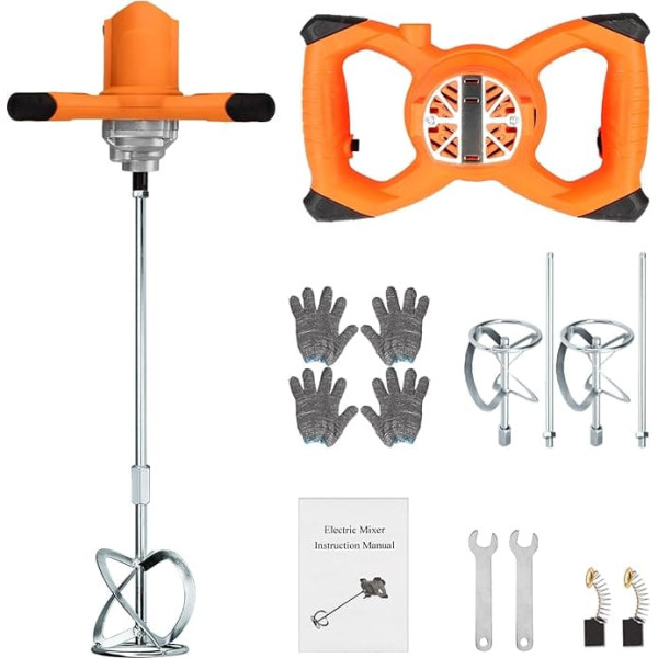 Powerful copper motor: Built-in powerful 2600W copper motor, with 220V standard European plug and efficient exhaust system, the diamond paint mixer ensures stable power output, and the porous heat dissipation design protects the motor from burnout. When first use, there may be slight sparks, and there may be a smell from the carbon brush. Wide Application - Removable design: easy to carry and assemble. This concrete mixer is equipped with a 2600 watt motor with a speed of 270-1100 rpm. Compared to conventional manual mixing devices, you can save a lot of work and time with the electric concrete mixer. 6-speed setting: this concrete mixer is equipped with 6 speeds, with self-locking switch and spiral double propellers that mix effectively and thoroughly, save time and prevent splashes. It is best to mix no more than ten kilograms of cement at once. If you notice that the mixing speed is slowing down, please lift the machine and stop working to avoid damage caused by overheating. It is best to give the machine a break after forty minutes. What you get: concrete mixer x 1; replacement carbon brush (7 x 11 x 15 mm) x 2; installation key x 2; S-shaped mixing rod x 2; protective gloves x 2. Worry-free customer service: If the product is defective due to quality problems, free replacement or 100% refund). › See more product details