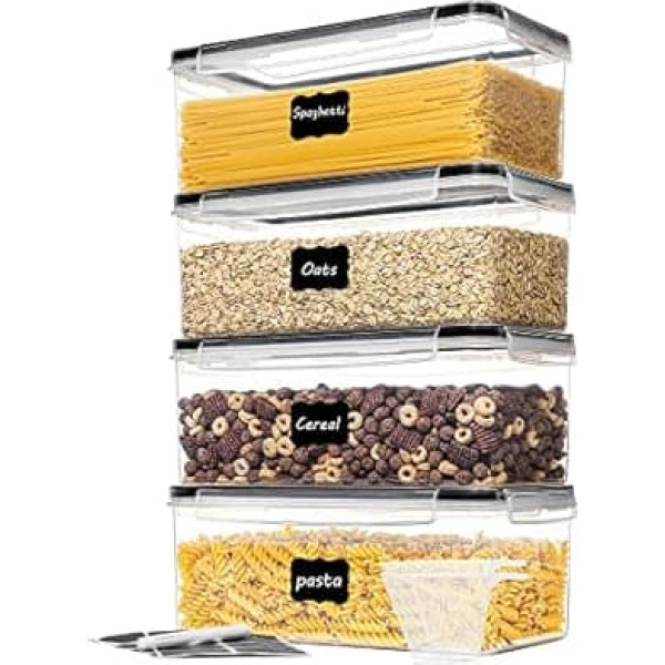 3.2 L Storage Jars with Lid, Airtight, Set of 4, BPA-Free Storage Box, Kitchen, Spaghetti Storage, Pasta, Storage Container for Pasta, Cereal, Cornflakes