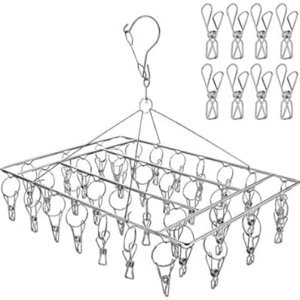 High-quality metal sock dryer: this sock hanger is made of high-quality stainless steel, durable, strong bearing and high strength against corrosion rust. Unlike other plastic or hollow steel version, which is easily damaged and rust from sunshine or extrusion. Windproof design and 360° rotation: the windproof top hook has an ingenious and easy to use closure that prevents the whole thing from being blown away in strong winds. And the convenient 360° rotation allows you to quickly reach the desired hook without being blocked by other garments. Space-saving and foldable: hang up to 36 small items in a compact space, you will not be confronted with too few hangers and take up more space problems. The alignment of the hanger can be freely changed, the clamps are arranged alternately, and the breathability is very good. When not in use, the hanger folds flat so it is easy to store and can be set up quickly and easily without tangling. Multi-purpose sock hanger: multifunctional sock hanger that can hold different scenes such as baby clothes, bras, socks, scarves, hats, ties, handkerchiefs, towels, gloves, etc. and is ideal for housewives. It is easy to hang on cabinets, shower curtain rod, laundry room, outside clothesline, etc. Homnoble offers reliable customer service and quality assurance. If you find any defects or quality problems with the sock hanger, please contact us at any time. We will get back to you within 24 hours and offer a solution that satisfies you 100%. › See more product details