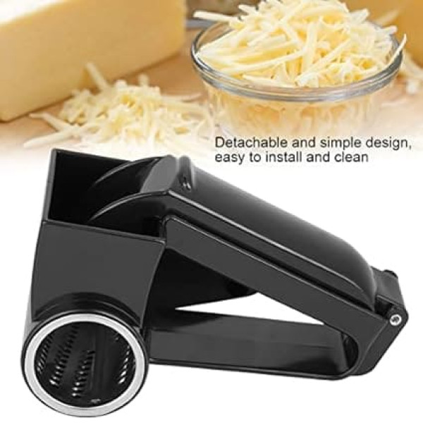 Rotary Cheese Grater, Manual Stainless Steel Cheese Slicer, Vegetable Cutter, Hand Crank, Kitchen Tool (Black)