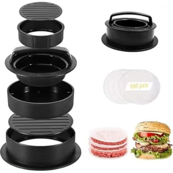 Navani 3 in 1 Silicone Burger Press Non Stick 100 Wax Papers Large Small Half Pounder Burger Mold Set