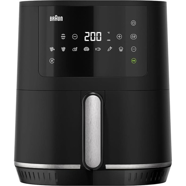 Braun MultiFry 3 HF 3030 Hot Air Fryer, 4.3 L, 1500 W, Digital Temperature Control, 80-200 °C, Timer, 8 Programmes, Touch Control, Non-Stick Coating, Cooking Basket & Grate, Dishwasher Safe, Black