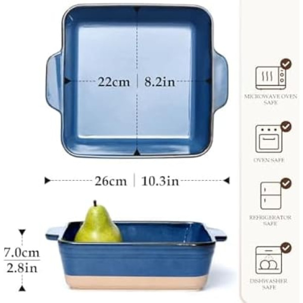 Versatile brownie pan: perfect for small batch brownies or a smaller portion of lasagna. The baking mould is ideal for baking meat to vegetables. Easy to clean: Ceramic lasagna pan is a non-porous material, which means it is easy to clean, making the porcelain baking bowl a pleasure to both look at and eat for many years. Also dishwasher safe. Ceramic brownie dishes have a beautiful, minimalist design that adds a touch of elegance to your food. 【Heat Retention】Ceramic square casserole dishes for oven have excellent heat retention properties, which means your food stays hot for longer, allowing you to enjoy a warm and soothing meal. Unique and artistic appearance: The unpredictable colour changes and patterns that occur during the burning process give each ceramic piece a unique and artistic appearance, making it very decorative and desirable. Fire transformations can be manipulated to create specific colors, patterns and effects, allowing for a high level of customization and personalization. Dishwasher, microwave, oven, dishwasher safe: Stoneware brownie pan is resistant to high temperatures, making it safe and durable for everyday use. Freezer, microwave, air fryer and oven safe. › See more product details