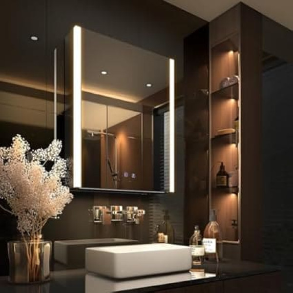 [Appropriate brightness] This mirror cabinet is equipped with LED light strips on both sides and bottom, which can provide sufficient light sources to meet daily needs. The brightness of the illuminated medicine cabinet can be adjusted from 10% to 100% to meet your taste. You can also choose from the three-stage colour temperature 3000K-4000K-6500K. [Unique design and practicality] The overall design of this medicine cabinet is unique, elegant and modern. It is equipped with a USB and socket inside, which allows you to charge in it. [Better Defogging] Our wall mounted illuminated medicine cabinet has a built-in defogger. The anti-fog function works when you touch the vent button. So you don't have to worry about the fog when applying make-up. [Space-saving capacity] You can easily attach the medicine cabinet to the wall to save more space. Equipped with two layers of glass dividers, the medicine cabinet can maximise the use of space. All kinds of toiletries can be stored inside to make the bathroom clean and tidy. Strong package easy to install: Our mirror cabinet is packed with a reinforced package to better protect the LED mirror and cabinet body. It is easy to install with the instructions. If you have any further questions, please feel free to contact us on Amazon. › See more product details