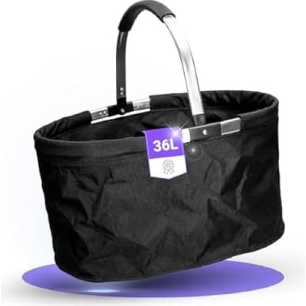 Sturdy construction – Our shopping basket is made from a lightweight, sturdy aluminium frame, which guarantees a high load capacity yet is easy to transport High-quality materials – the robust polyester that seams the basket is not only tear-resistant, but also particularly easy to clean, which allows long-term and hygienic use Ergonomic carrying comfort – the folding handle of our baskets are equipped with a soft EVA handle, which ensures a pleasant feeling even during prolonged wear, ideal for everyday use Large capacity – with a volume of 36 litres, our basket with handle offers enough space for your grocery shopping or equipment for a family picnic Christmas gifts for women – this versatile tote bag can be used as a shopping basket, picnic basket or beach bag and is the perfect gift idea for girlfriend, women, mum and partner › See more product details; Product description With its generous diameter of 40 cm and a volume of 36 litres, the \; Product description With its generous diameter of 40 cm and a volume of 36 litres, the \; With its generous diameter of 40 cm and a volume of 36 litres, the \