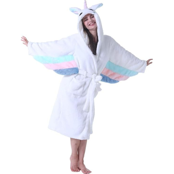 Product description In keeping with the principles of ergonomic design, the garments are loosely cut and comfortable to wear. At the same time, a belt tie is provided at the waist for a better fit and to follow the curves of the body so that it does not look too baggy. The 3D cartoon animal designs are eye-catching and cute, and keep the head warm. The batwing sleeves are very distinctive. There are also pockets at the waist to keep your hands warm, and they are also convenient for stowing your mobile phone, keys, credit card, etc. if you pop outside. The bathrobes are colourful, bright and make people happy. Whether for after a bath or a morning shower, these beautiful bathrobes offer you the utmost in comfort, and you’ll feel like you’re in a warm embrace. An excellent choice of gift for a birthday, Valentine's Day, Christmas or New Year, and for family, friends, partners, etc. Bathrobe for men and women. Size: one size (suitable for adults with a height of 155 - 175 cm = 61 - 68 inch ). Specifications: 1 x cartoon animal bathrobe.-; Product description In keeping with the principles of ergonomic design, the garments are loosely cut and comfortable to wear. At the same time, a belt tie is provided at the waist for a better fit and to follow the curves of the body so that it does not look too baggy. The 3D cartoon animal designs are eye-catching and cute, and keep the head warm. The batwing sleeves are very distinctive. There are also pockets at the waist to keep your hands warm, and they are also convenient for stowing your mobile phone, keys, credit card, etc. if you pop outside. The bathrobes are colourful, bright and make people happy. Whether for after a bath or a morning shower, these beautiful bathrobes offer you the utmost in comfort, and you’ll feel like you’re in a warm embrace. An excellent choice of gift for a birthday, Valentine's Day, Christmas or New Year, and for family, friends, partners, etc. Bathrobe for men and women. Size: one size (suitable for adults with a height of 155 - 175 cm = 61 - 68 inch ). Specifications: 1 x cartoon animal bathrobe.-; In keeping with the principles of ergonomic design, the garments are loosely cut and comfortable to wear. At the same time, a belt tie is provided at the waist for a better fit and to follow the curves of the body so that it does not look too baggy. The 3D cartoon animal designs are eye-catching and cute, and keep the head warm. The batwing sleeves are very distinctive. There are also pockets at the waist to keep your hands warm, and they are also convenient for stowing your mobile phone, keys, credit card, etc. if you pop outside. The bathrobes are colourful, bright and make people happy. Whether for after a bath or a morning shower, these beautiful bathrobes offer you the utmost in comfort, and you’ll feel like you’re in a warm embrace. An excellent choice of gift for a birthday, Valentine's Day, Christmas or New Year, and for family, friends, partners, etc. Bathrobe for men and women. Size: one size (suitable for adults with a height of 155 - 175 cm = 61 - 68 inch ). Specifications: 1 x cartoon animal bathrobe.-