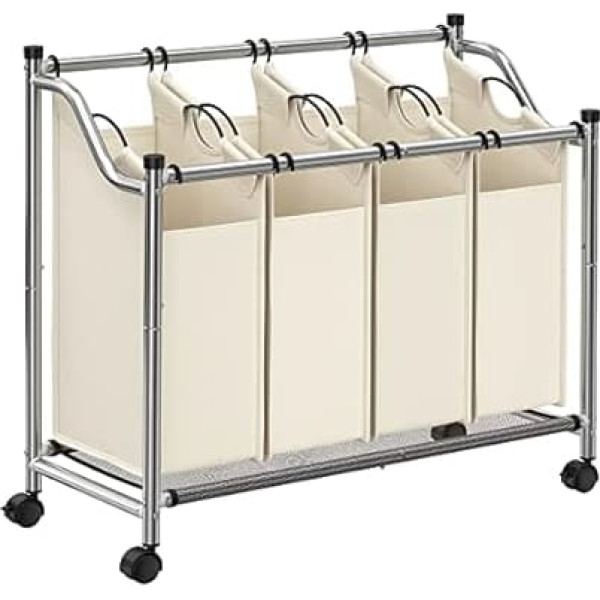 140 L, large capacity: this laundry basket with 4 compartments holds a total of 140 litres, so that all household laundry can be stored in one place and no laundry piles are scattered on the floor 4 compartments, laundry sorting made easy: with 4 separate laundry bags, this laundry sorter keeps your laundry ready by colour or type and shortens your sorting time, making the laundry day a breeze Mobile and fixable: thanks to the handles and the 4 wheels, this laundry trolley can be easily transported from the bedroom or bathroom to the laundry room. The 2 lockable casters keep the cart in place when needed Portable, waterproof bags: the 4 laundry bags with metal handles are removable, so you can easily carry the respective bags and bring them to the washing machine for unloading; thanks to the PVC coating, they are water resistant and easy to clean Robust and durable: the thickened, durable 600D Oxford fabric, supported by robust steel tubes with 22 mm d, forms a robust, stable and durable laundry basket that supports a total of up to 40 kg › See more product details