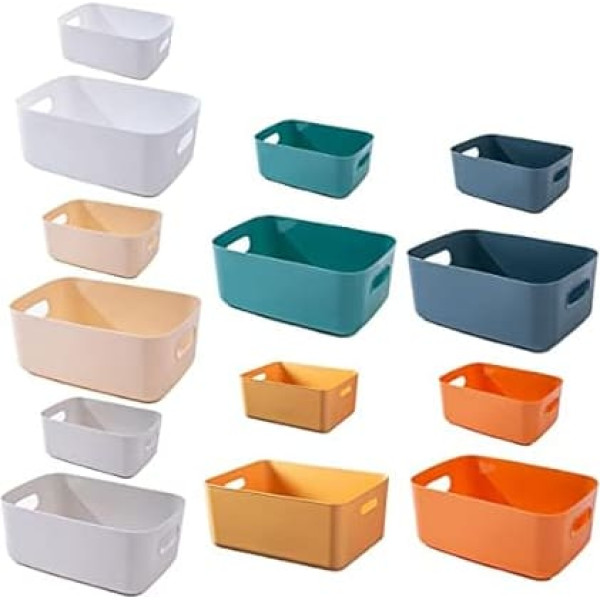 Perfect storage size: you will receive 14 storage containers. Size (7 pieces 24 x 17.5 x 9.5 cm + 7 pieces 20 x 14 x 7 cm) Durable and high quality: these storage baskets are made of excellent plastic material, which is strong enough not to bend or break easily when storing heavy items, and durable for long-term use. This organization baskets set has 7 bright colors, so you can organize your clutter according to different colors to create a style for your life. Easy to use: these storage boxes have handles on both sides, so you can easily pick them up. The open storage containers without lids make the cabinet storage box easy for you to see and access the contents. They can be used as storage baskets for shelves, kitchen cabinets or under the desk and feature an integrated handle for easy transportation. Wide applications: this modern design is very elegant and versatile, suitable for your craft accessories, cabinet organiser, bathroom storage toiletries, make-up, pantry goods, office supplies, medicine storage box, under sink storage, cleaning and laundry products, stationery or toys. Easy to clean: please clean only by hand with mild soap and warm water. These plastic baskets for organising are not dishwasher safe, please do not put in the dishwasher. If you find an error or problem, our customer support team offers full return and refund. We are here to help you! › See more product details