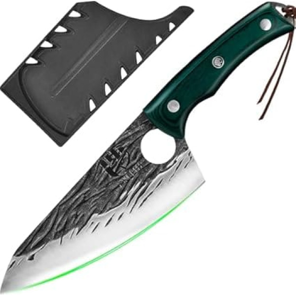 FULLHI Butcher Knife, Full Tang Serbian Chef's Knife, High Carbon Steel, Meat Cleaver, Forged Kitchen Knife for Outdoor, Camping, Birthday Gift (Green, Japanese Chef's Knife)