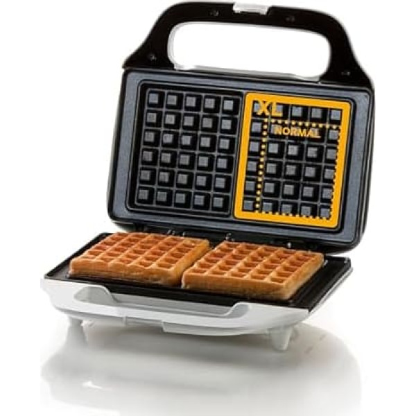 Large waffles in compact device; extra large baking surfaces for extra large waffles: 230 x 135 mm 35% larger baking surface compared to conventional waffle irons Space-saving: can be stored upright Non-stick, safety lock, 900w Quantity: 1 › See more product details