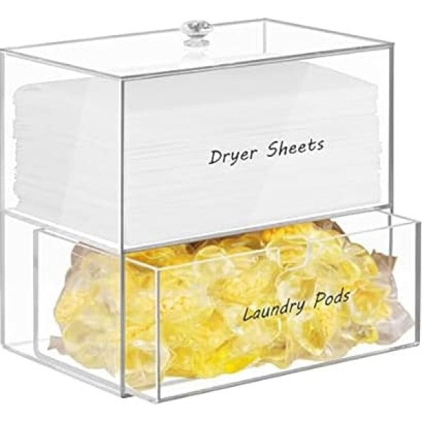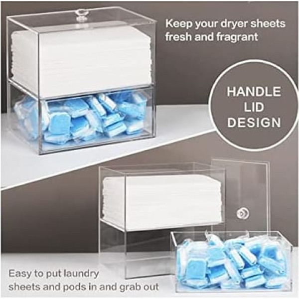 PREMIUM ACRYLIC MATERIAL The dryer towel holder is made of 4mm thick high quality acrylic, looks clean and super slim. So you can see through the dryer sheet box and refill it before the dryer sheets run low. A cute and high quality container for your dryer sheets will make your laundry room look really nice and organized. LARGE CAPACITY & MULTIFUNCTIONAL This dryer towel dispenser is 7 inches tall. Add a layer of drawers to the ordinary dryer towel holder so that it can hold up to 400 pieces of 8.7\; Product description 1 piece; Product description 1 piece; 1 piece