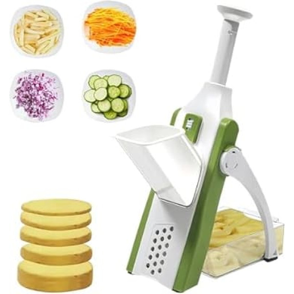 Quick and easy preparation – whether you use the multi-cutter as a chip cutter, potato cutter or cube cutter, chopping is quick and easy in no time at all. The slicer is also suitable as a fruit slicer Multifunctional and varied – with the multi-cutter for the kitchen, it will never be boring. Cut your fruit and vegetables according to your preferences. For example, choose between thick or thin potato slices Space-saving - The multi-cutter can be stored to save space after use. For this purpose, the kitchen aid can be easily folded Easy to clean - The all-purpose slicer can be cleaned quickly and easily by hand after use. Alternatively, the kitchen appliance can also be cleaned with the dishwasher Quality and safe – with our products, we want to support you in kitchen work. We only rely on the best quality. The opening through which the fruit and vegetables are inserted is protected and so your fingers › See more product details