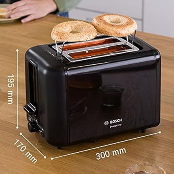 Bosch TAT3P423GB DesignLine Stainless Steel Two Slice Toaster, Black