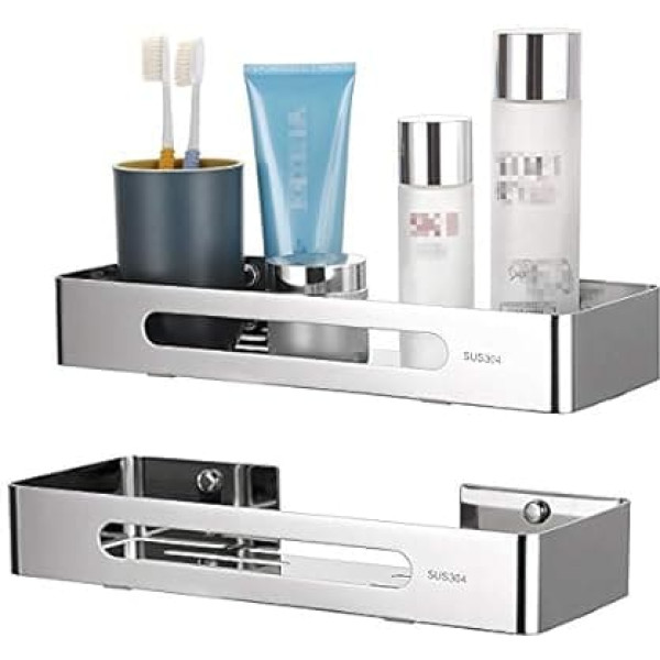 The shower caddy provides extra storage space, maximizes your wall for storage and reduces messy counter space. Suitable for shower corners, wet room, bathroom, toilet, cubicle, kitchen where you need tidy storage A simple and simple storage shelf in a base look to give your room a chic and clean look Easy to install: wall mounted bathroom shelf, first determine the location and mark it, then drill hole, insert the dowel into the drill hole, finally fix the shelf on the wall Made of SUS304 stainless steel, rust resistant and sturdy structure, which is everyday and versatile Measures 31 cm length by 12 cm width by 4.8 cm height Please check the size before purchasing › See more product details; Product description The storage rack fills the voids nicely against walls, maximizing the use of your wall to create a display and storage space, reduce messy counter space. Store shampoo, shower gel, soap and other bath items within easy reach. Specification: Measures 31 cm length by 12 cm width by 4.8 cm height Colour: silver. Material: stainless steel. Wall Mounted Package Included: 2 x Bathroom Storage Rack; Product description The storage rack fills the voids nicely against walls, maximizing the use of your wall to create a display and storage space, reduce messy counter space. Store shampoo, shower gel, soap and other bath items within easy reach. Specification: Measures 31 cm length by 12 cm width by 4.8 cm height Colour: silver. Material: stainless steel. Wall Mounted Package Included: 2 x Bathroom Storage Rack; The storage rack fills the voids nicely against walls, maximizing the use of your wall to create a display and storage space, reduce messy counter space. Store shampoo, shower gel, soap and other bath items within easy reach. Specification: Measures 31 cm length by 12 cm width by 4.8 cm height Colour: silver. Material: stainless steel. Wall Mounted Package Included: 2 x Bathroom Storage Rack