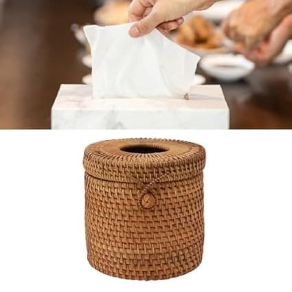 Tissue Box Cover, Rattan Tissue Box Cover, Tissue Box Holder, Tissue Paper Holder, Rectangular, Rattan Woven Tissue Box Cover for Home and Office (Cylinder Style)