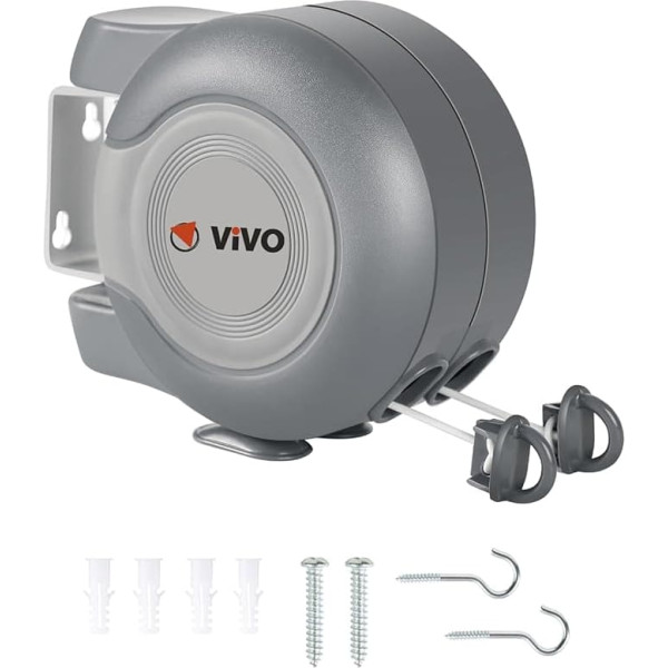 HIGH QUALITY CLOTHES LINE Our dual retractable clothesline is made of sturdy plastic and strong white PVC retractable cable, which is durable and weather resistant to ensure you can use this clothesline for years. DOUBLE RETRACTABLE CLOTHES LINES With a double cable design, our adjustable clothesline can hold a lot of clothes and hangers, 2 x 50 feet lines provide you with enough space to dry all your clothes at once for outdoor or indoor. EASY TO INSTALL The outdoor retractable clotheslines are easy to install and come with all necessary hardware to set up in no time. All you need to do is screw each winch to a wall or clothesline post. WALL MOUNTED Our heavy duty retractable clothesline is very easy to set up on most walls in minutes. Stores neatly and can be kept out of sight when not in use. Our clothesline is perfect for keeping the home's cosy. Can be used anywhere: with our washing lines, you can dry laundry indoors and outdoors. Excellent for hotels, patio, balcony, deck, camping and more. Have fun drying your clothes and sheets, energy-saving laundry drying. › See more product details; Product description Our double retractable clothesline is the perfect solution for those who need extra space to dry their clothes. With an incredible 31 metres of drying area, you can hang your laundry in one go without worrying about running out of space.; Product description Our double retractable clothesline is the perfect solution for those who need extra space to dry their clothes. With an incredible 31 metres of drying area, you can hang your laundry in one go without worrying about running out of space.; Our double retractable clothesline is the perfect solution for those who need extra space to dry their clothes. With an incredible 31 metres of drying area, you can hang your laundry in one go without worrying about running out of space.
