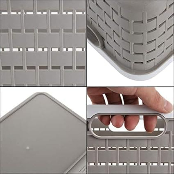 Dimensions: 287 mm x 218 mm x 135 mm Durable polypropylene material design with attached handles, can be easily slid out of cabinets for convenient access This storage bin features a wave design for a stylish look. Hollow carved design is helpful for ventilation and easy wipe clean care Perforated pages help you see the contents of the container to find what you need faster Multipurpose plastic storage container is perfect for organizing from snacks to cleaners › See more product details; Product description Ahnutter plastic storage bins are a stylish solution for all your storage needs. With its convenient square shape, it is compatible with a variety of shelves and cabinets, but it is also attractive enough to store outdoors on your floor or countertop. And the cut out handles on both sides make it easy to move from room to room. Ideal for storing clothes, magazines, toys, keys and more. This storage solution will help keep your home clean. Whether you need a place to store spare blankets or organize everyday items, this decorative basket helps you bring order to any room in your home. Specifications: Features: rectangular (shape). Placement: Shelf Overall Size: 287mm (H) x 218mm (W) x 135mm (D) Colour: grey. Features: with handles. Material: polypropylene. Care and cleaning: stain or wipe clean. Package includes: 5 x Multipurpose Storage Containers; Product description Ahnutter plastic storage bins are a stylish solution for all your storage needs. With its convenient square shape, it is compatible with a variety of shelves and cabinets, but it is also attractive enough to store outdoors on your floor or countertop. And the cut out handles on both sides make it easy to move from room to room. Ideal for storing clothes, magazines, toys, keys and more. This storage solution will help keep your home clean. Whether you need a place to store spare blankets or organize everyday items, this decorative basket helps you bring order to any room in your home. Specifications: Features: rectangular (shape). Placement: Shelf Overall Size: 287mm (H) x 218mm (W) x 135mm (D) Colour: grey. Features: with handles. Material: polypropylene. Care and cleaning: stain or wipe clean. Package includes: 5 x Multipurpose Storage Containers; Ahnutter plastic storage bins are a stylish solution for all your storage needs. With its convenient square shape, it is compatible with a variety of shelves and cabinets, but it is also attractive enough to store outdoors on your floor or countertop. And the cut out handles on both sides make it easy to move from room to room. Ideal for storing clothes, magazines, toys, keys and more. This storage solution will help keep your home clean. Whether you need a place to store spare blankets or organize everyday items, this decorative basket helps you bring order to any room in your home. Specifications: Features: rectangular (shape). Placement: Shelf Overall Size: 287mm (H) x 218mm (W) x 135mm (D) Colour: grey. Features: with handles. Material: polypropylene. Care and cleaning: stain or wipe clean. Package includes: 5 x Multipurpose Storage Containers