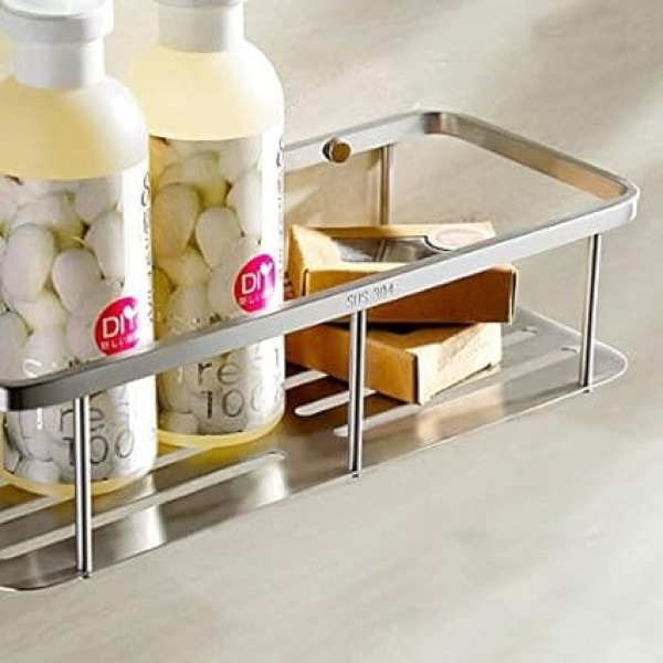 304 stainless steel construction, will not rust. Concealed screw heads. Open design for unobstructed view of basket contents. Accessories for mounting included. Shampoo, soap and other bath essentials are within easy reach in this corner shower basket. › See more product details