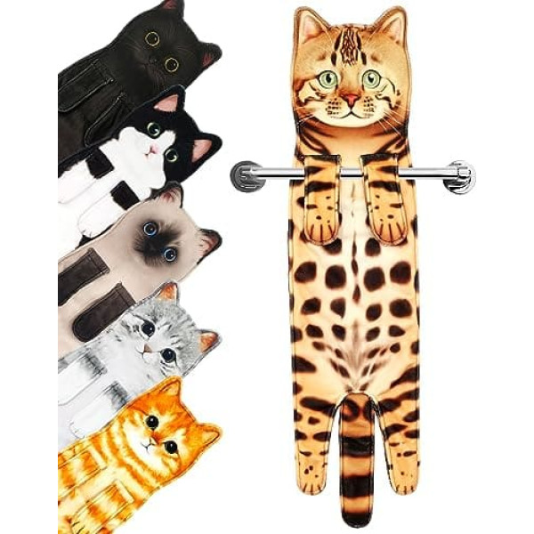 PERFECT DECORATION FOR YOUR HOME The kitten's paws are designed with snaps for easy hanging on the towel rack and not easy to fall off. Inspired by a cat picked up by its owner, this cat towel has a very realistic design that makes you feel compassionate and is also a must have for your home. Personalised gifts: This funny bath towel is a great gift idea for women for any occasion, such as Mother's Day gift, birthday gift for women, housewarming gift, Christmas gift, etc. Cat gifts for cat lovers would be a big surprise! Super practicality: it can be used as kitchen towels, bath towels, T-towels, face towels. The towel is soft and absorbent, it is a must have for a new home HIGH QUALITY FABRIC The cat head is made of special materials, so it stays upright when hanging. 85% polyester 15% nylon, soft and thickened fabric designs, make it stronger water absorption and more durable. Worry-free guarantee: We want to make sure you are satisfied with our cat towels. If you are dissatisfied or discover quality problems with your purchase, we offer a full refund. › See more product details; Product description Hanging Kitchen Towels Our team has improved and upgraded the style and material of the original cat towel. The bath towels are thicker and softer, more absorbent. Cute kitchen accessory, bath towel. It can be used as a bath towel, kitchen towel, face towel. Decorative towels, any place at home can be hung. Decorative kitchen towels, soft within reach. Soft, low lint. Face towels for bathrooms have a density of 600 grams per square meter (GSM), an important indicator of quality and performance. Quickly immerse yourself in water and provide incredible absorbency. Durable Funny bathroom decor towels with hanging loops Absorbent towels for the kitchen. Decorative towels for bathrooms made of 85% polyester and 18% nylon. Soft and comfortable fabric with strong water absorption. Cute bathroom decor towel, easy to wash. Towels and bathroom sets can be used for machine washing and hassle-free washing. Decorative towels for bathrooms. Decorate your kitchen and bathroom, make your home full of joy and vibrant. Cat decor towel for women. A nice gift for you, your friends and your family.; Product description Hanging Kitchen Towels Our team has improved and upgraded the style and material of the original cat towel. The bath towels are thicker and softer, more absorbent. Cute kitchen accessory, bath towel. It can be used as a bath towel, kitchen towel, face towel. Decorative towels, any place at home can be hung. Decorative kitchen towels, soft within reach. Soft, low lint. Face towels for bathrooms have a density of 600 grams per square meter (GSM), an important indicator of quality and performance. Quickly immerse yourself in water and provide incredible absorbency. Durable Funny bathroom decor towels with hanging loops Absorbent towels for the kitchen. Decorative towels for bathrooms made of 85% polyester and 18% nylon. Soft and comfortable fabric with strong water absorption. Cute bathroom decor towel, easy to wash. Towels and bathroom sets can be used for machine washing and hassle-free washing. Decorative towels for bathrooms. Decorate your kitchen and bathroom, make your home full of joy and vibrant. Cat decor towel for women. A nice gift for you, your friends and your family.; Hanging Kitchen Towels Our team has improved and upgraded the style and material of the original cat towel. The bath towels are thicker and softer, more absorbent. Cute kitchen accessory, bath towel. It can be used as a bath towel, kitchen towel, face towel. Decorative towels, any place at home can be hung. Decorative kitchen towels, soft within reach. Soft, low lint. Face towels for bathrooms have a density of 600 grams per square meter (GSM), an important indicator of quality and performance. Quickly immerse yourself in water and provide incredible absorbency. Durable Funny bathroom decor towels with hanging loops Absorbent towels for the kitchen. Decorative towels for bathrooms made of 85% polyester and 18% nylon. Soft and comfortable fabric with strong water absorption. Cute bathroom decor towel, easy to wash. Towels and bathroom sets can be used for machine washing and hassle-free washing. Decorative towels for bathrooms. Decorate your kitchen and bathroom, make your home full of joy and vibrant. Cat decor towel for women. A nice gift for you, your friends and your family.