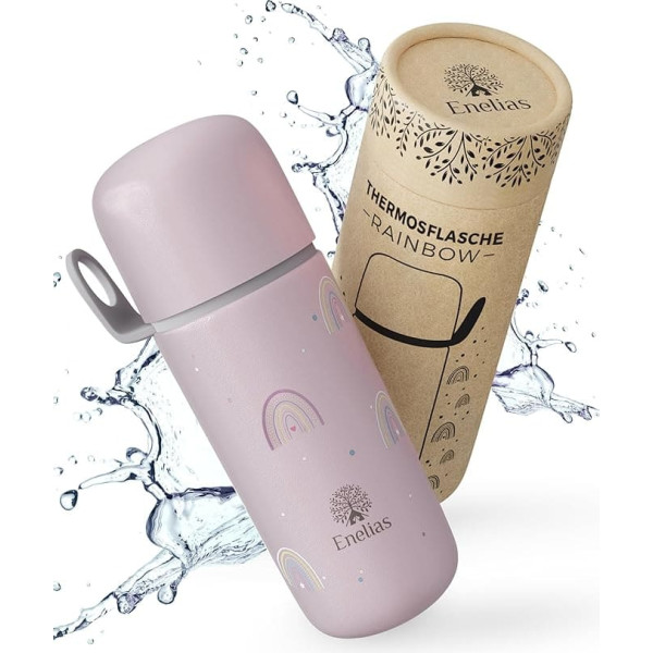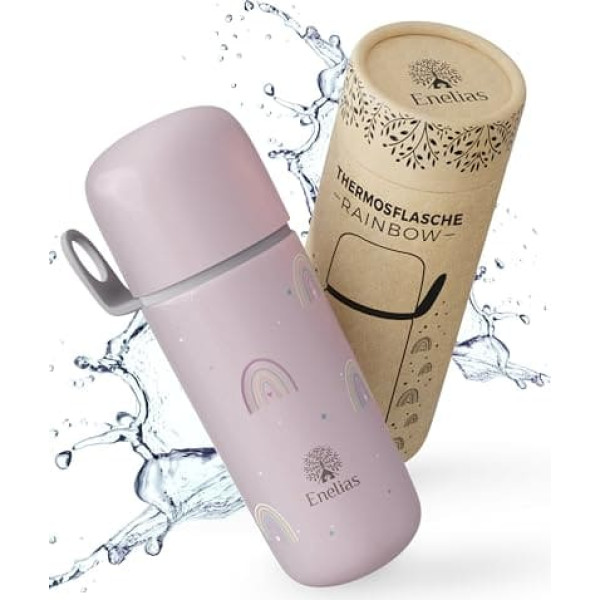 Enelias® Thermos Flask with Cup [350 ml] - Thermos Bottle with Practical Cap, BPA-Free, Suitable for Carbonated - Stainless Steel Drinking Bottle for Children for Trips, Nursery and School | Pink
