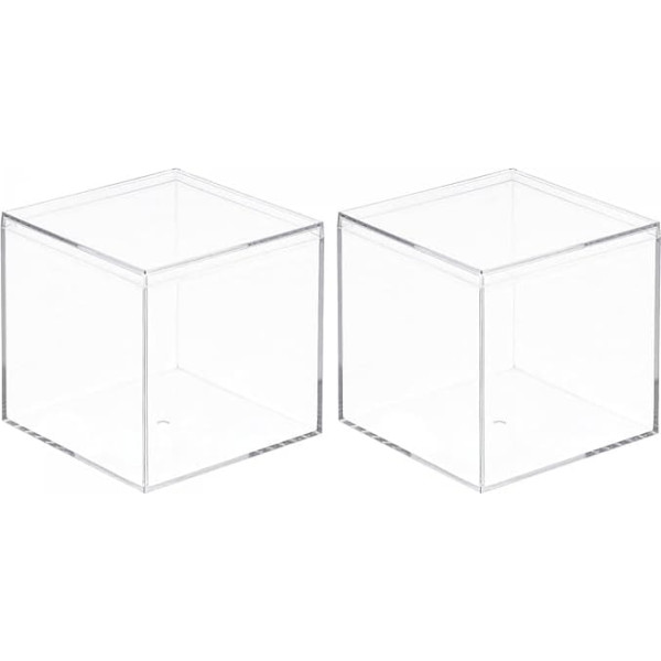 sourcing map 2 Pack Clear Acrylic Plastic Square Storage Box with Lid 9.5 x 9.5 x 9.5 cm Small Items Container