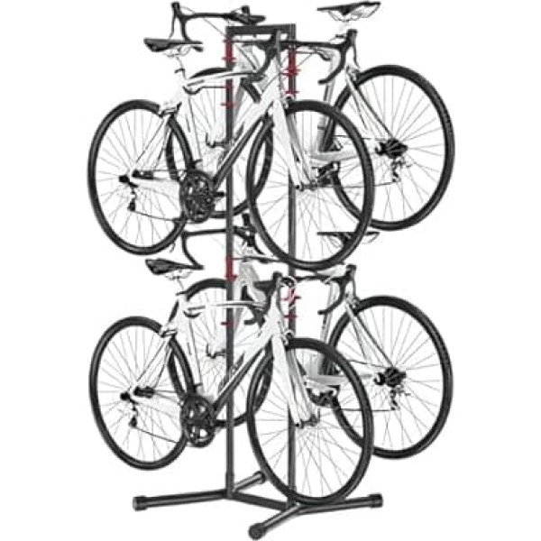 Take back your garage: The space-saving design of the Mimoke Garage Floor Bike Rack Stand allows you to conveniently store 4 bicycles Ideal for garage storage, provides efficient organization and space saving solution. Made from durable, high-quality materials, with a load capacity of up to 70 kg. Vertical design for holding mountain bikes, beach cruisers and bicycles with large tyres. NO DRILLING REQUIRED: our garage storage bike rack requires no drilling in walls, ceilings or floors make the freestanding bike rack easily repositioned for your convenience › See more product details; Product description The Mimoke bike stand is the perfect solution for anyone who wants to save space on the floor and keep their bikes organised and safe. The bike stand is a garage stand that does not require permanent attachment or drilling, making it easy to set up and use immediately. The bicycle stand is constructed with a durable design and can hold up to 70 kg, so you can store your mountain bikes, beach cruiser or fat tyre bikes with ease. The 4 bike storage shelves on the front and back make it ideal for homes with multiple bikes. To keep your bikes protected, the Mimoke Bike Floor Stand has a soft rubber protective layer on each bicycle storage surface. This prevents scratches, scrapes and other damage to your bikes and keeps them looking new for longer. In addition, thanks to the vertical design of the bicycle stand, you can easily access your bikes and make adjustments or repairs if necessary. This makes it a great addition to your garage or workshop. Choose the Mimoke Bike Floor Stand to store your bikes safely and efficiently. Say goodbye to tangled bikes and welcome organized, hassle-free storage.; Product description The Mimoke bike stand is the perfect solution for anyone who wants to save space on the floor and keep their bikes organised and safe. The bike stand is a garage stand that does not require permanent attachment or drilling, making it easy to set up and use immediately. The bicycle stand is constructed with a durable design and can hold up to 70 kg, so you can store your mountain bikes, beach cruiser or fat tyre bikes with ease. The 4 bike storage shelves on the front and back make it ideal for homes with multiple bikes. To keep your bikes protected, the Mimoke Bike Floor Stand has a soft rubber protective layer on each bicycle storage surface. This prevents scratches, scrapes and other damage to your bikes and keeps them looking new for longer. In addition, thanks to the vertical design of the bicycle stand, you can easily access your bikes and make adjustments or repairs if necessary. This makes it a great addition to your garage or workshop. Choose the Mimoke Bike Floor Stand to store your bikes safely and efficiently. Say goodbye to tangled bikes and welcome organized, hassle-free storage.; The Mimoke bike stand is the perfect solution for anyone who wants to save space on the floor and keep their bikes organised and safe. The bike stand is a garage stand that does not require permanent attachment or drilling, making it easy to set up and use immediately. The bicycle stand is constructed with a durable design and can hold up to 70 kg, so you can store your mountain bikes, beach cruiser or fat tyre bikes with ease. The 4 bike storage shelves on the front and back make it ideal for homes with multiple bikes. To keep your bikes protected, the Mimoke Bike Floor Stand has a soft rubber protective layer on each bicycle storage surface. This prevents scratches, scrapes and other damage to your bikes and keeps them looking new for longer. In addition, thanks to the vertical design of the bicycle stand, you can easily access your bikes and make adjustments or repairs if necessary. This makes it a great addition to your garage or workshop. Choose the Mimoke Bike Floor Stand to store your bikes safely and efficiently. Say goodbye to tangled bikes and welcome organized, hassle-free storage.