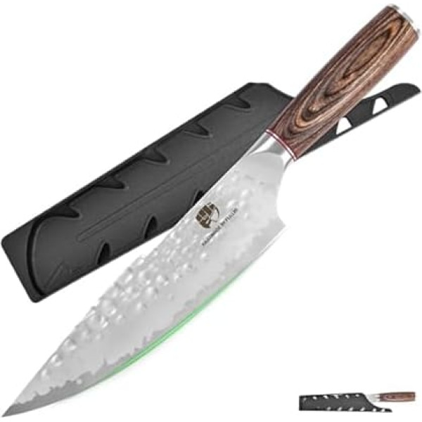 FULLHI Hammered Blade Kitchen Knife with Protection, Non-Stick Chef's Knife, Pakka Wood Handle Japanese Knife, Premium Stainless Steel Kitchen Knife with Sheath (7.9 Inch Chef's Knife)
