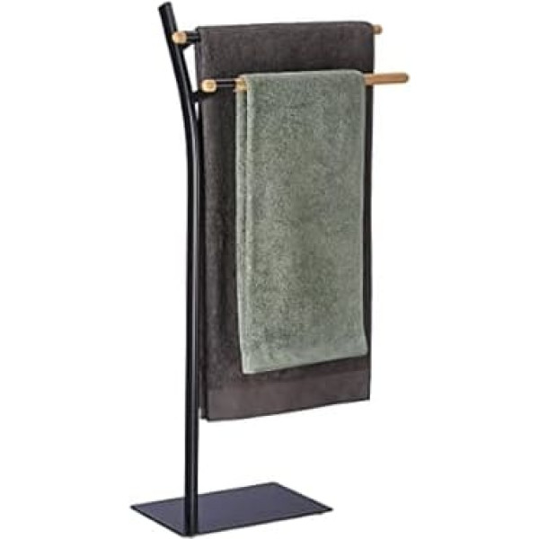 Relaxdays Freestanding Towel Rail with 2 Rails H x D 88 x 46.5 x 20 cm No Drilling Required Black / Natural