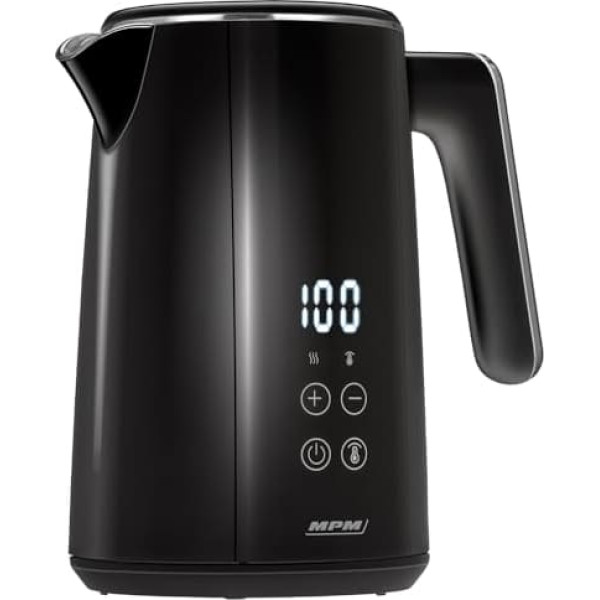 MPM MCZ-120/C Kettle 1.5 L with Double Wall Design, Temperature Control 40-100 °C, Stainless Steel Inner Container, 2200 W, Low Noise, Black