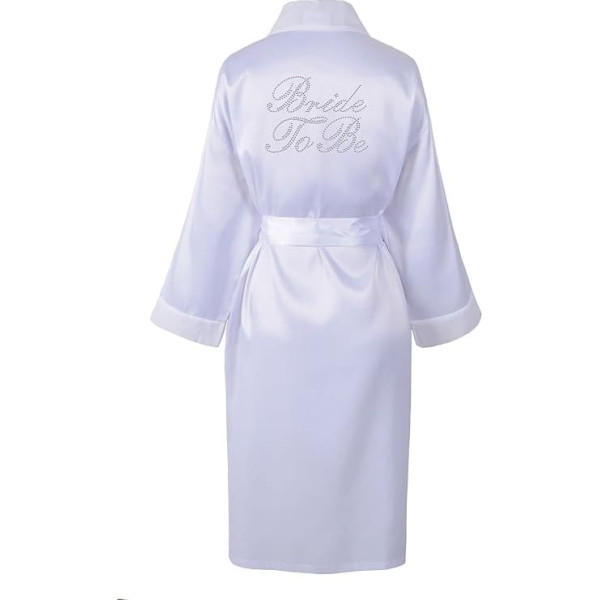 CrystalsRus Varsany Wedding Day Rhinestone Satin White Bride To Be Bathrobe Personalised Honeymoon Dressing Gown